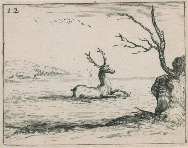 Editor: This is "Verschillende herten en een eland in een landschap" – "Various Deer and an Elk in a Landscape" – by Marcus Gheeraerts I, from 1583. It's an engraving. There’s something almost scientific about the way the animals are rendered. It’s like a detailed study. How do you read this print? Curator: Indeed. While appearing straightforward, prints like these served a distinct social purpose. The detailed rendering suggests an aspiration to scientific accuracy, aligning with the Northern Renaissance's burgeoning interest in the natural world. These images also functioned as status symbols, demonstrating the patron’s wealth and connection to the elite practice of hunting. Look closely, do you notice how the landscape acts almost like a backdrop rather than an immersive environment? Editor: Yes, I see what you mean. It does seem like the deer are almost posing in front of it. It’s interesting how this might have been connected to wealth…So these images were displayed almost as trophies? Curator: Precisely! These prints democratized access to imagery otherwise confined to painted or tapestried aristocratic spaces. They allowed a broader audience to engage with and emulate the symbols of power, however, that came with its own set of complex socio-political dynamics as art became a commodity. Doesn’t it also feel that with the black and white engraving, the animals almost look taxidermied even while alive? Editor: It definitely gives it an otherworldly vibe, like the creatures have already become displays! I hadn’t considered the implications of making these images more widely accessible, it’s much more complex than just documentation. Curator: Exactly. So, art and social class have always been tied to one another, which explains a lot about art in our own time too. Editor: Thanks! This was very insightful; it helps me better understand how art served socio-political functions!