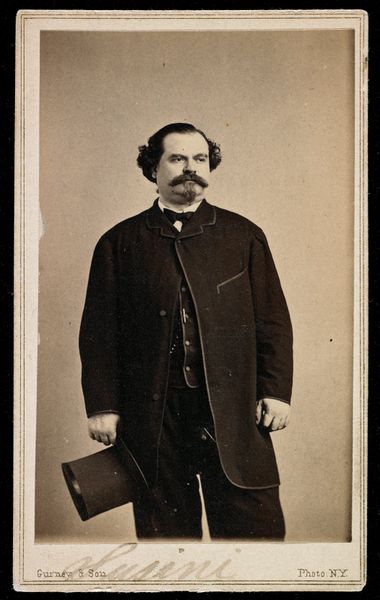 This photograph, "Portret van Pieter Stortenbeker," was taken by Maurits Verveer, who lived in the Netherlands during a time of significant social change. Photography in the 19th century became a powerful tool for shaping identity and preserving memory. Here, the sitter, Pieter Stortenbeker, is not merely captured; he’s presented. His pose and attire speak to his social standing and perhaps his aspirations. The carefully groomed mustache and beard, along with his formal coat, position him within a certain class. Verveer was a Jewish man in the Netherlands, a minority population, during a period where the cultural landscape was shifting. The way he chose to portray his subjects speaks to the negotiations that artists from marginalized groups were making, and their need to navigate the politics of representation. This photograph asks us to consider the relationship between identity, representation, and the cultural narratives that photography helped construct. It’s a moment frozen in time, inviting us to reflect on the complexities of self-fashioning.