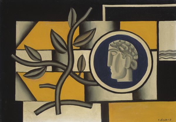 Curator: Juan Gris painted "Book and Guitar" in 1925, a moment where Synthetic Cubism was allowing for a playful recombination of objects and textures. It's currently held in a Private Collection. Editor: Hmm, muted tones…a quiet sort of Cubism, I suppose. There's something almost scholarly about it. Like peering into a forgotten corner of a Parisian cafe, a space where thoughts and melodies once mingled. Curator: I think you’re on to something with the idea of "quiet." Considering the context of the roaring twenties, there's an interesting juxtaposition here, right? Gris uses recognizable imagery—the book, the guitar—yet disrupts our sense of depth and form. How might we interpret that subversion within that era? Editor: Subversion…yes, but also a searching. It's as if the painting itself is in dialogue. The book, usually a source of knowledge, is here presented as fragmented as the guitar—is this a statement on art’s role within societal constructs? Curator: It absolutely invites that interpretation. Consider the flattened perspective, almost like a collage, which was characteristic of synthetic cubism. This artistic choice challenged traditional hierarchies within art itself, suggesting a democratization of representation, almost mirroring then-current social movements. Editor: See, I like it best for the simple mystery it evokes. That black swath—is it a guitar neck, shadow, or something else? It gives me pause. I think, beyond all the theory, it also creates beauty that just hangs in the air. Curator: Right, the pure visual effect can't be overlooked, of course. That tension between representation and abstraction creates space for reflection for sure. There’s a layering of meaning and sensory experiences... Editor: It’s also intriguing that Gris has removed most bright colours from this painting and worked almost monochromatically in soft beiges and greys - maybe pointing us more to a state of reflection than one of vivid exuberance. Well, this certainly offered more than a brief tune to chew on, didn't it? Curator: Absolutely! And considering how Gris’ work interacted with early 20th-century artistic and social discourse…well, perhaps it's more akin to a symphonic movement!