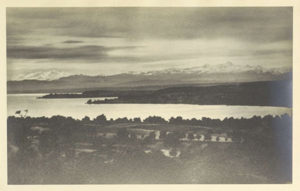Curator: This is William Henry Jackson's "Mount Massive, From Iron Hill." The tones are quite striking, aren't they? Editor: Yes, and immediately, I'm struck by how the vast landscape seems to dwarf any human presence. It feels almost... melancholy. Curator: The composition is masterful, dividing the scene into distinct horizontal bands. We see the foreground trees, then the plains, and finally, the imposing Mount Massive itself. Editor: And it's important to remember that Jackson's photographs played a role in shaping perceptions of the American West, influencing policies around land use, and, of course, impacting Indigenous populations. Curator: Certainly. But viewed formally, it presents a stark contrast between the textured foreground and the smooth, almost ethereal quality of the distant mountains. Editor: I see it as a visual record of Manifest Destiny, capturing both the allure and the potential consequences of westward expansion. Curator: Well, it seems we've both found something to ponder within this striking photograph. Editor: Indeed. Jackson's work offers a stark lesson about the complicated beauty—and troubled legacy—of the American West.