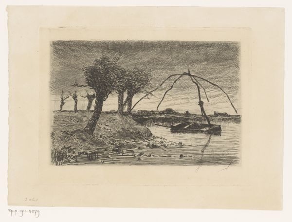 Adrien Le Mayeur de Merprés made this landscape with knot willows and a boat on the water with pen in the Netherlands. This drawing offers an interesting glimpse into the Dutch countryside and its representation in art. Made during a period of significant social and economic change in the Netherlands, it invites us to consider the cultural values that shaped the artistic production of the time. The Netherlands, with its unique geography of waterways, has always had a close relationship with its landscape. The image of the boat may reflect the importance of water for transportation and trade in Dutch society. By studying the art of this period alongside other historical sources, we can gain a better understanding of the complex relationship between art and society in the Netherlands. The social conditions prevalent at the time of its creation will provide an insight into the purpose of its design.