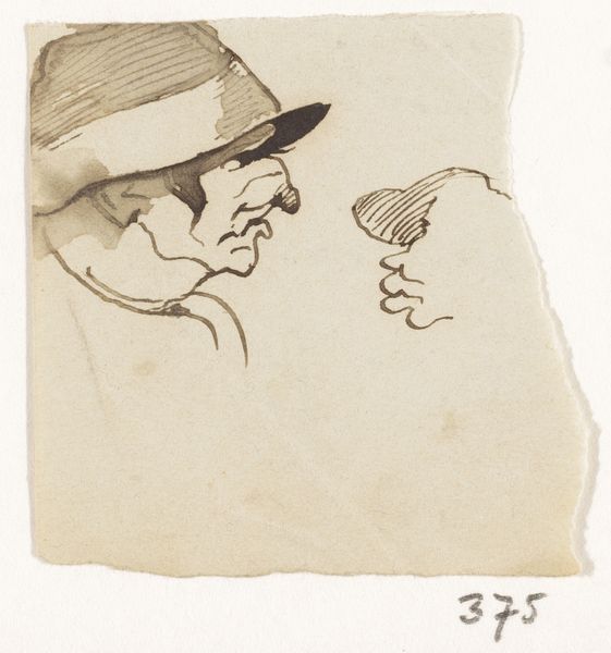 Johannes Tavenraat made this pen drawing, titled 'Three Heads,' in the Netherlands sometime in the mid-19th century. Tavenraat's sketches offer a glimpse into the visual culture of the time, reflecting an interest in physiognomy and character studies. The artist's quick, expressive lines capture the distinct features and perceived personalities of his subjects, who are likely common people he encountered in his daily life. During this period, there was a growing fascination with portraying individuals from various social strata, influenced by both scientific and artistic trends. Understanding the social and economic structures of the Netherlands during the 1800s is essential to interpreting Tavenraat's work. Scholars can consult period newspapers and conduct art market research to learn more about the artist and his time. These resources help us understand the meaning of art as something contingent on social and institutional context.