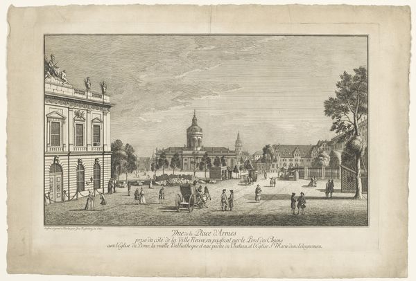 Jonas Haas created this print of 'Prospekt af Rådhuset på Nytorv i København', offering us a glimpse into 18th-century Copenhagen. Made during a time of significant social stratification, cityscapes like this were not just neutral depictions; they were carefully constructed to reflect the values and power structures of the era. Consider the figures populating the square; their placement and attire subtly hint at the class distinctions of the time. Haas was working in the visual language of the elite, producing images that affirmed their status and worldview. The print shows in great detail the architecture. But who had access to this architecture? Who was excluded? What we see, and what is left out, speaks volumes about the cultural and social norms of the period. This print, while seemingly a straightforward depiction of a city square, is really a carefully constructed narrative about power, identity, and belonging in 18th century Copenhagen.