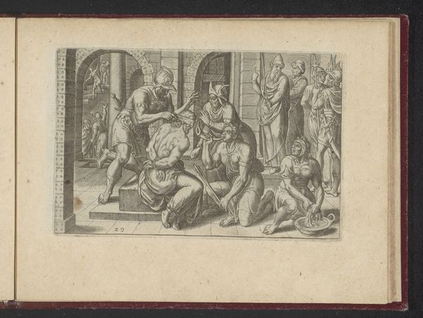Cesare Fantetti made this engraving of 'God Creating Adam and Eve' sometime between 1660 and 1675. It presents a moment from the Book of Genesis, a foundational narrative in Western culture. Fantetti's image invites us to consider the social and cultural meanings attached to creation stories during the Baroque era. Consider the visual codes at play here. God is represented as an old man with a flowing beard, a common trope in European art that seeks to make the divine accessible. Adam and Eve are depicted as idealized nudes, reflecting Renaissance aesthetics and ideas about human perfection. The presence of Latin text situates the image within a learned, religious context. Made in Italy, this work aligns with the Catholic Church's efforts to visually reinforce its doctrines. How did images like this shape understandings of gender, power, and knowledge at the time? By studying religious imagery, tracing its circulation, and understanding the institutions that supported its production, we can better understand the complex interplay between art, belief, and society. The power of art lies in its ability to reflect and shape our understanding of the world.