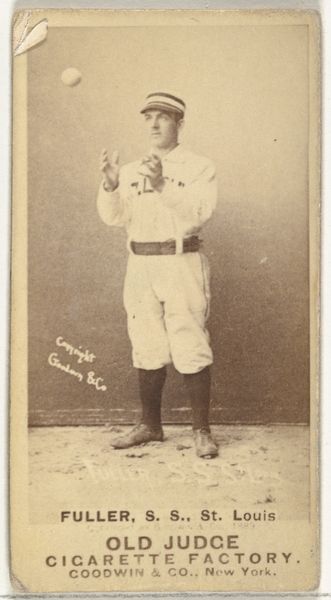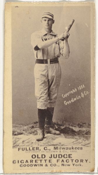 This is William Shenkel, pitcher for Milwaukee, captured in a photograph around 1888, part of the Old Judge Cigarettes series. The gesture he makes with his hands, preparing to hurl the ball, is what captures my attention. It’s a gesture we can trace back through time, echoing in images of ancient warriors preparing to cast spears, or even gods wielding thunderbolts. The concentration, the coiled energy before release, it's a primal posture. Think of Michelangelo's David, poised, ready to unleash his stone. The image of the athlete is a recurring motif in modern times that connects to the heroic ideal, from the Greek Olympic statues to Leni Riefenstahl's glorification of the body in the Nazi Olympics. Perhaps, subconsciously, we imbue athletes with a kind of mythical power, tapping into deep-seated needs for heroes and symbols of strength. The gesture becomes a conduit to this primal, subconscious desire for power, capturing our attention across centuries.