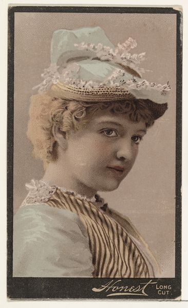 This is a promotional card titled "Actress posing in lace-collared bodice," created around the turn of the century by W. Duke, Sons & Co. to promote Honest Long Cut Tobacco. These cards were a popular advertising medium, offering glimpses into the idealized world of fame and beauty. Here, the actress is carefully posed, her lace collar and elaborate hairstyle signifying refinement. But consider the layers of representation at play: she is not just a woman, but a performer embodying a constructed persona, commodified to sell tobacco. What does it mean to be a woman whose image is so easily circulated and consumed? The actress’s identity becomes entwined with commerce and public perception. This tension between personal identity and public image resonates today, inviting us to reflect on the complex ways in which individuals are portrayed and consumed in our society.