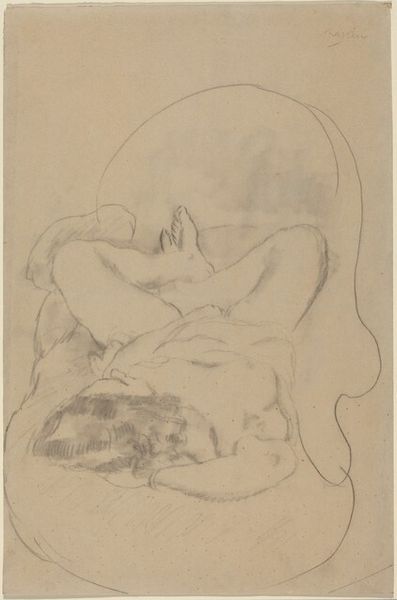 Curator: Before us, we have Mark Rothko's pencil sketch entitled "Young Girl." The ethereal quality immediately strikes me. It's like a memory fading at the edges. Editor: I'd agree. There's a delicacy here, almost hesitant lines that build form but don't quite solidify it. The starkness in contrast to Rothko's typical colorful oil paintings makes this all the more surprising. Curator: Precisely. The choice of pencil and the emphasis on line are paramount here. It's figuration stripped back to its essentials, line as its most vulnerable. Think of his turn to more figurative work to explore internal anxieties during World War II era in New York and how artists reflected personal fears more freely in their sketch works. This one is undated so difficult to locate it exactly but it makes a lot of sense it would be somewhere there. Editor: You mentioned anxieties, and I think that registers through the work even on a purely visual level. Consider the composition. The figure occupies only a small portion of the page, almost as if swallowed by negative space. Is she fading away, or merely a small person? The heavy shading on the far arm, for instance. And yet this adds to the piece the strength that it would not have had otherwise, by introducing a mysterious atmosphere. Curator: An astute point! This relationship between form and emptiness echoes some recurring concepts we see through all of Rothko's creative expressions - presence and absence, visibility and invisibility as if the subject were in process of becoming. It's a study in emotional transparency. Editor: Indeed, and that vulnerability, that sense of becoming, allows us to see figuration beyond mere representation. In doing so it becomes less about any real child, but our own emotional landscape - this makes a perfect addition for our audience for us to keep discussing after the visit.
