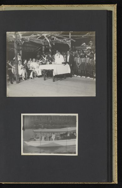 This gelatin silver print, titled ‘Thé dansant op 19 April 1931’ was captured by Atelier Kurkdjian. Photography, as a medium, has always been deeply entwined with technology and social dynamics. The gelatin silver process, dominant in the early 20th century, allowed for mass production of images. In this photograph, the composition and the way it captures the essence of a social event becomes very important, reflecting both the artistry of the photographer and the social context of the time. The choice of black and white further emphasizes the tonal contrasts and textures, bringing out the details of the room. Notice the ceiling fans, the light fixtures, the wall paper, and the ornate upholstered chairs, all of which are imbued with cultural meaning. By understanding the materials and making of this photograph, we can fully appreciate its meaning as a social record, and as a work that blurs the lines between fine art and everyday documentation.