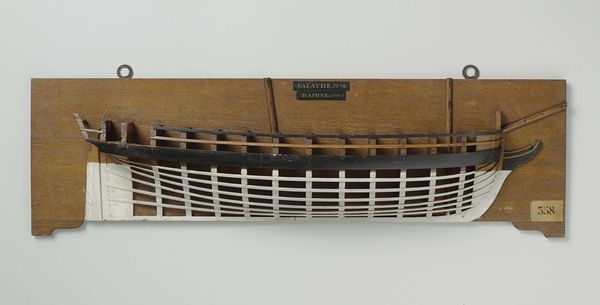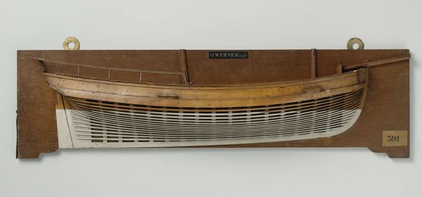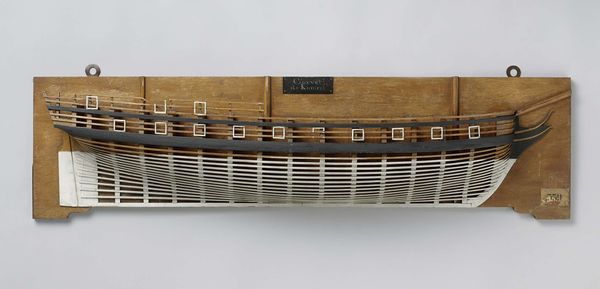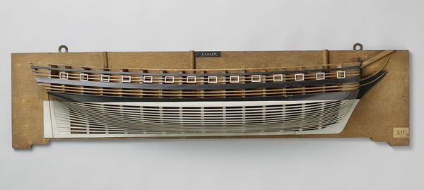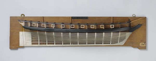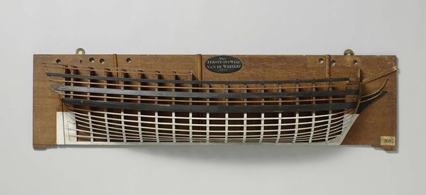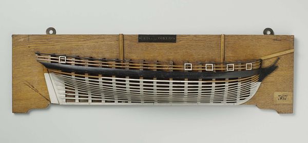 This is a model of a floating dock made by Koninklijke Fabriek P. van Vlissingen & Dudok van Heel. The framework of this dock is immediately striking, an iron skeleton built to hold the water. Consider the ladder motif ascending the structure. The ladder symbolizes ascent, progress, and connection between different realms. We see it in ancient Egyptian art as a symbol of spiritual ascent, and in Jacob's Ladder in the Old Testament, connecting Earth and Heaven. The ladder is not simply a practical tool; it embodies a deep-seated human aspiration. Its presence here brings forth a complex interplay of function and symbolism. Think of the Tower of Babel, the ladders are forever reaching, as the human spirit always strives towards something beyond itself. The gridded structure may evoke feelings of order and control, yet the implications of containment and confinement are also present, touching upon the delicate balance between progress and the inherent limitations of the human condition.
