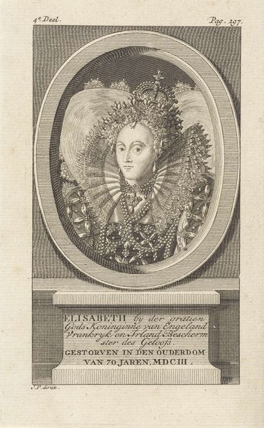 Curator: At first glance, there's a serene formality to this piece. It almost feels like a cameo, a miniature stage setting. The portrait's encased within these ornamental frames, adorned with flowers and Latin text… intriguing. Editor: Indeed. This engraving, crafted by Theodor de Bry in 1596, is titled "Portret van de sultane Tamira," which translates to "Portrait of Sultana Tamira." It resides in the Rijksmuseum, and it offers us a glimpse into how European artists perceived figures from other cultures. Curator: I love that circular frame – it feels like a window, or perhaps a coin immortalizing her likeness. There's a certain theatricality to the presentation, yet the subject herself appears rather subdued. Did they actually know what she looked like, or is it conjecture? Editor: That's the crux of the matter, isn't it? The 'truth' of representation. Consider that this print, a product of the Northern Renaissance, would likely be consumed by a European audience with little direct access to Ottoman court life. It performs power, but perhaps also Orientalist fantasy, filtering an image through colonial perceptions and projections. Tamira's headdress and jewels might not accurately reflect her attire, but symbolize "otherness." Curator: You can almost feel the weight of the metal plate beneath the engraver’s tool, you know? Each delicate line, painstakingly carved, imbuing her face with a stillness that borders on the melancholic. Is it admiration? Objectification? I feel caught between those possibilities. Editor: Exactly. And while art history gives us De Bry, feminist theory forces us to confront what her gaze means within a patriarchal colonial context. Is she a figurehead stripped of agency or a powerful leader navigating complex political terrain? Her apparent stillness speaks volumes in that tension. The framing with Latin phrases suggests her as both exotic ("nomad") and virtuous ("Greek virgin"), another conflicting duality. Curator: I suppose these aren’t merely images, but negotiations between worlds… each mark and flourish telling a story of curiosity, conquest, and perhaps, a profound, mutual misunderstanding. Editor: A perfect summary. By questioning those visual narratives, we can decode how perceptions were manufactured and solidified centuries ago and see echoes in modern forms of representations today. It invites an endless, and important, dialogue.