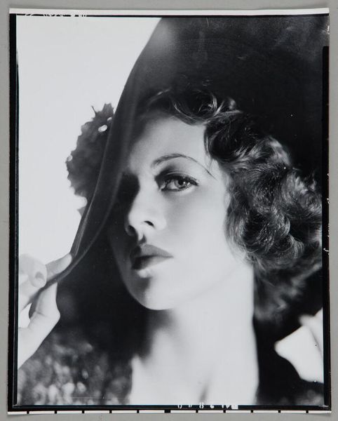 Curator: Here we have an untitled portrait of a woman by Shellburne Thurber, part of the Harvard Art Museums collection. Its dimensions are roughly 57 by 44 centimeters. Editor: The first thing I noticed is a sort of melancholic beauty, maybe a touch of defiance in her gaze. That earring... it's almost bird-like, so fragile against the sharp edges of her hair. Curator: Thurber’s work often explores themes of identity and representation. The monochrome palette here really emphasizes the texture and form. Editor: It’s interesting, isn't it, how she's framed almost like a cameo, but there's something so modern about her at the same time? Makes you wonder about all the untold stories. Curator: Exactly. The portrait's lack of specific dating allows it to transcend a fixed historical context. Editor: It’s a face that lingers, you know? It invites you to invent her narrative. Curator: It certainly makes us question the role of portraiture. Editor: Absolutely. A fascinating glimpse, frozen in time.