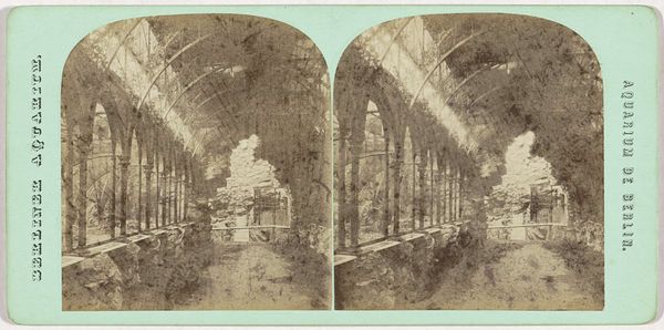 This stereoscopic card, "Aquaduct-waterval in Bergpark Wilhelmshöhe", was created by Hermann Selle. Stereoscopic cards were popular during the late 19th century as a form of entertainment, allowing people to experience a sense of depth and realism in their viewing of landscapes and landmarks. This image captures the aqueduct-waterfall in Bergpark Wilhelmshöhe. Originally built during a time of aristocratic excess, the park later opened to the public, and became a kind of stage for the viewing of the power of nature and the cultural elite. The image's appeal lies not only in its representation of the aqueduct, but also in how it offers a glimpse into the intersections of class, leisure, and nature during the era. It reminds us to think critically about how landscapes were, and continue to be, shaped by social forces, power structures, and our own desires for both spectacle and tranquility.