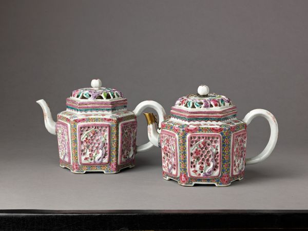 Curator: I'm struck by the meticulous decoration on this "Tea service" crafted circa 1765-1770 by Porzellanmanufaktur Frankenthal. It’s currently held here at the Rijksmuseum. The delicate stoneware seems almost too precious to use. Editor: Absolutely, it's eye-catching! The blue and gold patterns, vertically striped and filled with flowers, project opulence and ceremony. Do you feel the Rococo influence, with that almost flamboyant decoration? Curator: Precisely. Rococo was the style du jour, often flaunting wealth. A set like this one would have served a social function as much as a practical one. Tea drinking in the 18th century was rapidly turning into a cultural phenomenon for the elites. Editor: It’s more than just utility, isn’t it? The matching patterns across the various objects, teapot, sugar bowl, cream pitcher, even the tray create a sense of harmony, and a shared identity that would have served as a visual shorthand within the household. Curator: Indeed. Serving tea became part of a wider ritual, and this ceramic tea set exemplifies the era's interest in controlled environments for the leisured classes. It almost feels designed to promote conversation. Editor: Visually, the stripes and flowers form almost a language in themselves. Stripes project authority, a structural visual assertion, the flowers add a lightness. It could signify the domestic virtues: order and beauty combined in the life of its user. Curator: That’s a fascinating read. I agree; domestic virtue and conspicuous consumption went hand in hand during this period. This service really represents the social and economic structures of its time, the aristocratic values taking physical form in ceramic objects. Editor: Studying the piece certainly reveals those layers. I am now considering how modern-day rituals echo these patterns, in both what they conceal and reveal about status and values. Thank you for this enriching observation!