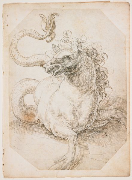 This ink and wash drawing of a nereid on a hippocamp with putto is currently held at the Metropolitan Museum of Art. It is a design for a ceiling, likely for a wealthy patron's home. This image revives classical imagery to convey a sense of luxury and sophistication. The nereid, a sea nymph, and the hippocamp, a creature with the front of a horse and the tail of a fish, were common motifs in ancient Roman art and architecture, often used to decorate bathhouses and villas. In the 18th century, we see a renewed interest in classical antiquity, fueled by archaeological discoveries and a desire to emulate the perceived grandeur of the Roman Empire. This drawing reflects the social conditions of its time, when the aristocracy sought to legitimize their power and status through displays of wealth and cultural refinement. The art market and collecting practices served to reinforce social hierarchies. By studying the visual codes, artistic conventions, and historical context of this drawing, we can gain insights into the cultural values and social structures of the past.