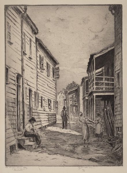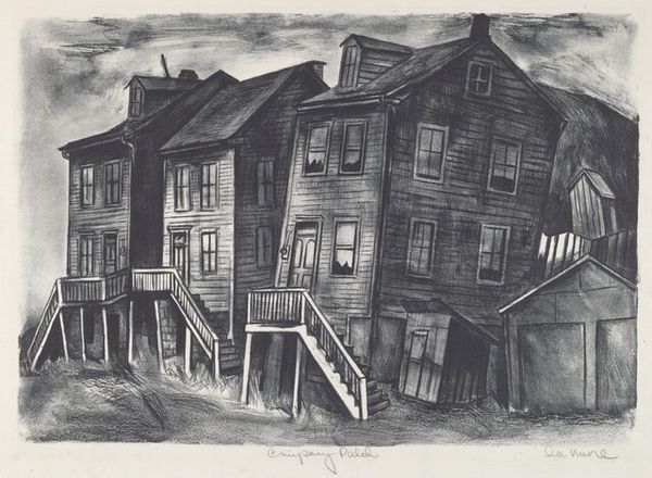 Rita Albers created this etching, depicting a street scene, in the middle of the 20th century. Observe the motif of the precarious dwelling, common throughout urban landscapes in times of rapid change. These structures, stacked and huddled together, remind us of the Tower of Babel, symbolizing ambition and the potential for collapse. Look at how the artist renders these buildings: not as solid, safe havens, but as fragile and exposed. Like stage sets, the dwellings’ interiors are revealed to the viewer. Recall the architectural fantasies of Piranesi, where buildings intertwine with human life, blurring the lines between private and public spaces. Here, Albers uses a similar approach, inviting us to consider the psychological weight of our environments. This echoes the anxieties felt during urbanization, revealing a collective subconscious fear of instability. The image persists, reminding us that the interplay between our inner lives and the architecture around us is an eternal cycle.