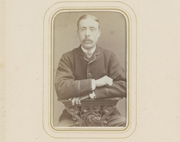 Editor: So here we have "Portret van de schilder Jozef Van Lerius, halffiguur," a gelatin-silver print photograph from 1861 by Joseph Dupont. It's such a beautifully muted image. There’s a certain gravitas that seems typical of the era, but also something deeply human in his eyes. What jumps out at you? Curator: Oh, you’re spot on. It's more than just a portrait, isn't it? I see a quiet intensity, a soul gazing out from a bygone era. What gets me is the light – how it softly illuminates his face, almost like a Vermeer painting, drawing your attention to those thoughtful eyes. What do you make of his clothing? Editor: I hadn't considered the light so carefully, thanks! His attire suggests a man of stature, the cut and material of the suit are not cheap. How does that affect the reading of his expression, that intensity? Curator: Absolutely. The detailed coat, the neat cravat – all markers of status. But look closer – the slight disarray, the hint of wear. To me, it whispers of a man consumed by his art, where passion overshadows pretense. It's a lovely tension, isn’t it? Almost as if he is both caught up and tired of the trappings of his profession. What does his hand placement suggest to you? Editor: Good point, I’d almost missed that level of detail. I'd venture that him holding his own hands suggests self-containment and introspection. Thank you for your help! Curator: Indeed! It's almost as if he's grounding himself, collecting his thoughts before sharing them with the world. Isn't it wonderful how a single image can tell such a rich, layered story?