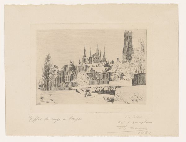 Hein Vrolijk made this pencil drawing, titled "Stadsgezicht", or "Cityscape", to capture the feeling of a bustling urban center. Consider the buildings: they present a kind of architectural cross-section. On the left, we see the orderly rows of windows on a building of the laboring classes; in the center, the step-gabled roof of a wealthy merchant family; and in the background, the pointed spire of a church. Vrolijk gestures to a full spectrum of the social order. The marketplace also reflects this social order. The sketch offers a snapshot of Dutch society, likely in the early to mid-20th century. It encapsulates a moment of everyday life in a time when the Netherlands was navigating its identity between tradition and modernization. We can better understand this drawing by considering the history of Dutch urbanism and the role of public spaces. Research into local archives and social histories of the Netherlands will give us a greater appreciation of the world that Vrolijk captured.