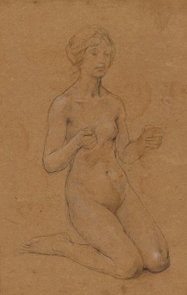 Editor: This is “Studies For The Singing Priestess In Song" by Herbert James Draper. It's a drawing, most likely charcoal and pencil, and what immediately strikes me is how deliberately Draper maps out the figure, using that grid beneath the drawing. It feels almost like a preparatory engineering sketch, and I wonder how that informed the final painting. What jumps out at you? Curator: What I see is a fascinating intersection of artistic aspiration and the social constraints of Draper's time. The academic tradition, with its emphasis on figure drawing, provided the technical framework – the very grid you mentioned, suggesting a pursuit of ideal form. But look at the title: "Singing Priestess." It hints at something more, perhaps a fascination with ritual or even an orientalist gaze common at the time, linking artistic depictions to political power structures. Editor: So you're saying it's not just about capturing beauty, but also about projecting certain ideals, or even power dynamics, onto the female form? Curator: Precisely. Think about the role of the nude in art history. It's rarely just about the human body. The figures we see often carried symbolic weight tied to religious doctrine or secular control, often presented in painting or sculpture for a predominantly male gaze within these societal constructs. How do we reconcile this technical, almost scientific, study with the romantic or even exotic imagery the title evokes? What stories do these historical influences tell us about not only Draper but also the art world of his time? Editor: It's a real mix of technical skill and societal baggage, isn't it? I didn’t consider this interplay between Draper's methods and his place in culture, it shows a lot about his priorities, and about who was setting the tone of fine art at the time. Curator: Absolutely. Art is rarely created in a vacuum. And thinking critically about the social, cultural, and political forces that shape its creation and reception helps us understand art history. Editor: Thank you, it really gives the piece a completely new context.