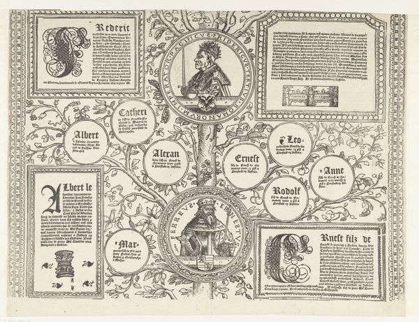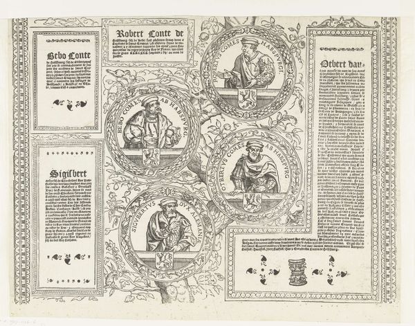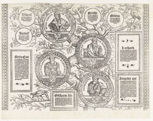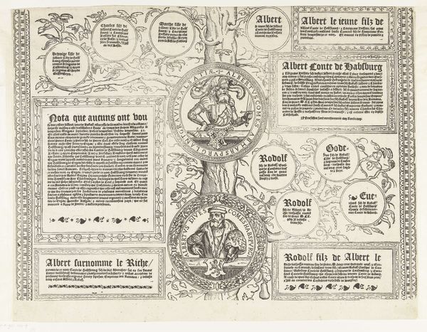 This print of the Habsburg family tree was made by Robert Péril, but we don't know exactly when. This image is typical of early modern Europe, where lineage and ancestry were crucial for establishing social status and political legitimacy. Visual codes such as heraldry and portraiture were often used to construct a narrative of noble descent. Family trees were important tools of dynastic self-representation. By tracing its origins back to illustrious ancestors, the House of Habsburg sought to enhance its prestige and solidify its claim to power. But family trees were not objective records. They were interpretations of the past that could serve present-day interests. Historians examine a range of documentary sources, such as charters, genealogies, and chronicles, in order to understand the purposes for which such images were made.