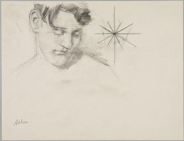 Curator: Denman Waldo Ross's "Allen Parker" at the Harvard Art Museums presents a delicate graphite rendering, measuring about 21 by 28 centimeters. There's an immediacy to it. Editor: It feels like a study. The sketchiness, the unfinished quality... I wonder about the materials. Was this a readily available paper, perhaps even repurposed? Curator: Exactly. Ross was deeply interested in the materials and processes of art-making. The paper itself bears faint inscriptions, suggesting its prior use. The labor involved is also of interest. Editor: And what of Parker? What role did he play in Ross's artistic world, and how was portraiture viewed institutionally at the time? Curator: Given Ross's emphasis on design theory and his possible link to contemporaneous movements, it is all about craftsmanship. Editor: So, a meeting of minds through accessible materials, carefully wrought, and imbued with historical echoes. Curator: A material testament to human expression, indeed. Editor: A subtle reminder of the power within even a simple sketch.
