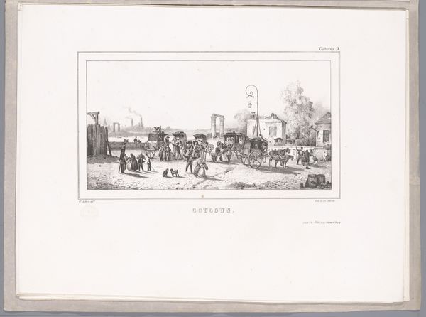 Victor Adam created this lithograph of a carriage with four passengers. The horses, symbols of virility, power, and forward movement, draw the viewer's eye. Notice how the animal on the right has been cropped, as if the scene has been clipped mid-motion; this truncation is not simply about capturing a fleeting moment, but rather suggesting a larger, continuous journey. Such images of travel become metaphors for life itself, where individuals are propelled forward. This imagery echoes in various forms across time, from ancient Roman processional friezes to modern film, each medium capturing the human desire for progress. The emotional undercurrent here—this relentless push forward—speaks to our collective subconscious, a shared memory of seeking something beyond the horizon. The recurring motif underscores our timeless, relentless drive to move, discover, and evolve, even as the landscape around us continues to change.