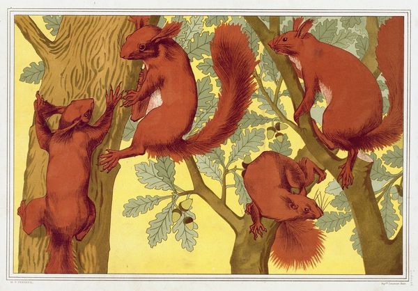 This chromolithograph of a grey squirrel, part of a series for Allen & Ginter Cigarettes, invites us to consider the enduring symbolism of this creature. The squirrel, perched on a branch amidst verdant leaves, embodies themes of thriftiness and preparation. Across cultures, the squirrel's association with gathering and storing nuts links it to foresight. One can find similar associations in ancient Greek fables and Norse mythology, where squirrels feature as messengers, scurrying between worlds, carrying information and connecting different realms. These qualities tap into a collective memory of survival and adaptation. The squirrel reminds us of the basic human impulse to plan for the future, a concept deeply embedded in our subconscious. The quick, darting eyes of the squirrel create a sense of alertness and vigilance, engaging viewers with the animal's energetic presence. The squirrel, therefore, isn’t merely a depiction of wildlife. It’s a symbol that has traveled through time, resurfacing in various cultural contexts, each time adapting to new meanings while retaining its essence of preparedness.