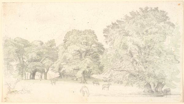 Editor: This is George Inness's *Landscape*, it’s undated but created with watercolor on paper. It has this serene, almost hazy atmosphere, a peaceful vista. What strikes you about it? Curator: Beyond the immediate tranquility, I see a dialogue with the Hudson River School and its emphasis on capturing the American landscape. But Inness diverges; there's an intimacy here, a softening of the patriarchal idea of dominating the landscape, moving away from the rhetoric of manifest destiny and ownership that drove much of that earlier imagery. Do you notice how the figures within the landscape are almost imperceptible? Editor: They are tiny! It almost blends into the scenery... like they are a part of it rather than imposing on it. Curator: Exactly. And the fact that it is plein-air and watercolor connects it to ideas of immediacy and ephemerality which became linked to impressionism, but also to feminist practices of ‘unimportant’ subjects – challenging the grand narratives. Can you see a commentary on industrialization reflected through this subtle re-engagement with nature? Editor: That's a great point, because you don’t really *see* the industrial revolution here. Just these subtle hints. Curator: Perhaps Inness uses that absence to remind us of its looming presence, urging viewers to reconsider their relationship with the environment and those traditionally marginalized from its resources. Think about land ownership during that time period, race and access… It makes the painting less about picturesque scenery and more about an implicit critique of power structures. Editor: I see what you mean, framing the landscape as an engagement with both environmental and social concerns adds so much depth to my initial reading! Curator: Right? Thinking of it this way invites us to question what landscapes conceal.