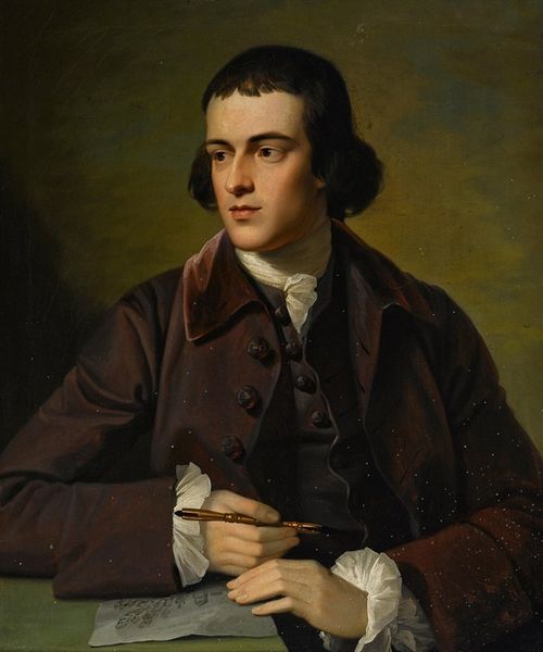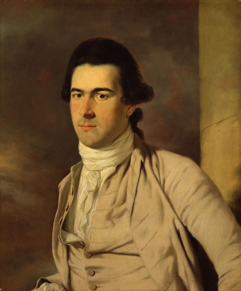Editor: Here we have Thomas Sully’s oil painting, "William Alston, Class of 1825," created in, well, 1825. It's a pretty standard portrait in some ways, but something about his expression feels so knowing, like he carries a secret. What do you see in this piece, looking beyond just the surface of a portrait? Curator: It is in his eyes, isn’t it? Portraits are rarely just documentation. Look at how Sully uses light and shadow – the dramatic chiaroscuro. Light often signifies knowledge or divine favor, doesn’t it? So what message does that send in context of a collegiate portrait of this era? This isn't simply about recording his likeness; it’s about suggesting his potential, his future. Editor: So, he’s almost a symbol *of* potential? Like, a representation of what an educated man could become? Curator: Precisely. Think about the other symbols present. That high, white collar suggests status and the clothing speaks of academia. Together they project societal expectations onto Alston, linking personal identity to the collective aspirations of his class and the institution. The portrait subtly conveys an encoded narrative of societal expectation. What continuities and ruptures from our visual communication conventions today do you detect? Editor: Hmm, that's interesting. I guess now we are hyper-aware of individual identity… I'm stuck thinking about that encoded narrative and its continued existence. It's definitely food for thought. Thanks! Curator: Indeed. A portrait becomes more than a face; it's a mirror reflecting our ever-evolving cultural landscape.
