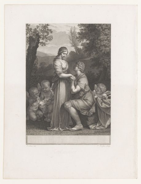 Etienne Leguay's "Three Children with a Bird's Nest," captures a scene of youthful curiosity, centered around a potent symbol: the bird's nest. This nest, cradled by a child, brimming with fragile eggs, is an age-old emblem of fertility, new life, and domesticity. We see echoes of it in Renaissance paintings, where a bird often accompanies the Virgin Mary, symbolizing the soul or divine providence. Yet, the nest is not merely a symbol of gentle beginnings. It also hints at vulnerability and the cycle of life, much like the memento mori. Consider how a similar image appears in Dutch Golden Age paintings, reminding viewers of life’s fragility. The reaching child embodies humanity’s perennial desire to uncover nature’s secrets. Emotionally, the image resonates with a bittersweet sense of wonder, hinting at the ephemeral nature of innocence.