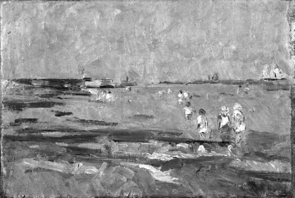Here, we see a painting by Pierre Bonnard. The composition features a bridge that acts as a strong horizontal and structural element, dividing the canvas. The brown and beige palette creates a warm, summery atmosphere. The figures, boats, and water reflections are rendered with loose brushstrokes. Bonnard’s interest lies in the act of seeing rather than in precise representation. The painting blurs the distinction between reality and illusion, and the surface of the water mirrors the sky and surrounding landscape. The bridge, viewed from an unconventional angle, is a structural element in the composition and adds a geometric contrast to the organic shapes of the natural elements. Bonnard uses color and form to convey a sense of light and atmosphere. The reflections and shadows disrupt traditional notions of perspective. By inviting the viewer to interpret the scene, Bonnard destabilizes established meanings and encourages a more subjective reading of space and perception.