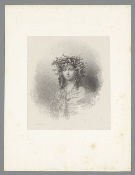 This is Joseph Schubert's "Portret van de gravin van Saluces," a print of modest size now residing in the Rijksmuseum. The countess is depicted with soft gradations, her form built up from delicate lines. Note how Schubert uses the texture of the printmaking to convey a sense of depth and volume. The cross-hatching technique, particularly evident in the shading of her face and drapery, creates an almost palpable sense of the fabric’s weight and fall. The lines are not merely descriptive; they actively construct the sitter's presence. Consider the semiotic play here. The countess’s elaborate headwear and ornate belt buckle communicate status, yet the softness of the printmaking lends her a vulnerability. It’s this interplay between the graphic structure and the codes of representation that engages us. This tension invites a deeper reading of the work.