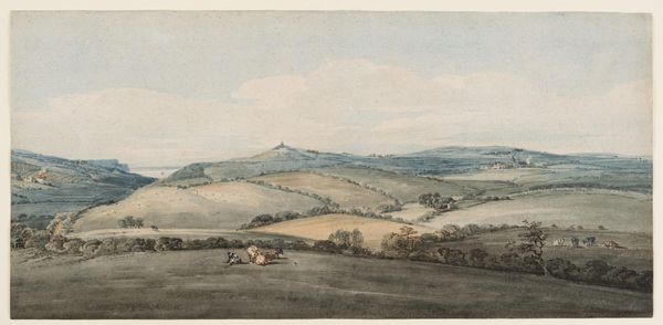Aert Schouman made this landscape near Windsor using watercolor, a medium that emphasizes spontaneity and transparency. The application of watercolor allowed Schouman to capture the atmospheric qualities of the English countryside with delicate washes of color. The thinness of the pigment creates a sense of light and air, giving the scene its distinctive mood. This technique was particularly favored by landscape artists for its ability to quickly record impressions of nature, making it ideal for capturing the subtle nuances of light and weather. Watercolors, while seemingly simple, require skill in controlling the flow and layering of the paint, demanding a high level of craftsmanship. The immediacy and portability of watercolor also aligned with the growing interest in landscape as a subject, and the increasing accessibility of art materials to a broader audience. Ultimately, understanding the material qualities of watercolor enriches our appreciation of the work. It is a reminder of the artist's skill, and of the broader social and cultural contexts that influenced artistic practice during the period.
