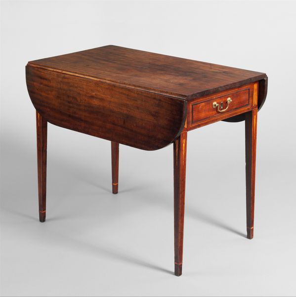 Editor: This is "Salontafel met glasplaat rustend op vier overhoeks geplaatste poten," which translates to "Coffee table with glass plate resting on four diagonally placed legs," made around 1924 by Hendrik Wouda. It's a photograph of a wooden table, and what strikes me most is how incredibly geometric it is. What do you see in this piece? Curator: The geometry is key. These sharp angles, the way the legs splay – it isn't merely about structural stability. Consider the social landscape of the 1920s. The world had been reshaped by conflict, and suddenly, ornament was distrusted. Forms became about the underlying structure and functionality, almost an architectural language. Think of it as truth in materials, and even moral uprightness. The diagonals speak to dynamism, forward momentum; a complete rejection of old world notions, wouldn't you agree? Editor: Absolutely. It's like a physical manifestation of a societal shift. Was glass a commonly used material? Curator: Yes, though its symbolism evolved. Before industrial processes refined its production, glass was precious and fragile, reserved for elites. Here, glass serves a more democratic function: light, hygiene, ease of maintenance. Function dictated the choice, not status. How does it challenge your notions of historical class and identity? Editor: I guess I never really thought about furniture carrying so much cultural weight. It really changes how I see design. Curator: Indeed. By viewing everyday objects like this through the lens of visual culture, we can better interpret the evolution of thought and meaning of material objects in everyday life. What are your take-aways about design, identity, or memory? Editor: I will remember how ordinary objects speak volumes about who we were and how our society changed, thanks to their cultural meanings. Thanks for that fresh perspective.