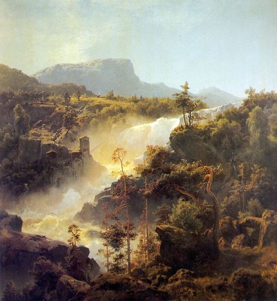 Thomas Hill captured this vista of Yosemite Canyon with oil on canvas. Here, the grand scale of the canyon is emphasized by the contrasting motifs of misty atmosphere and solid, imposing rock faces, symbols of nature’s power. Consider how such mountain imagery recurs across cultures, from the sacred mountains of ancient Greece, like Mount Olympus, to the revered peaks in Asian art. Mountains often symbolize transcendence, stability, and a connection between the earthly and the divine. Yosemite, in this representation, evokes a similar sense of awe and spiritual resonance. The misty atmosphere obscuring the canyon's depths is a symbolic veil, hinting at hidden, mysterious aspects of nature, a reminder of the sublime and the limits of human perception, engaging viewers on a profoundly subconscious level. This non-linear progression of symbols resurfaces and evolves across different historical contexts, constantly acquiring new layers of meaning.