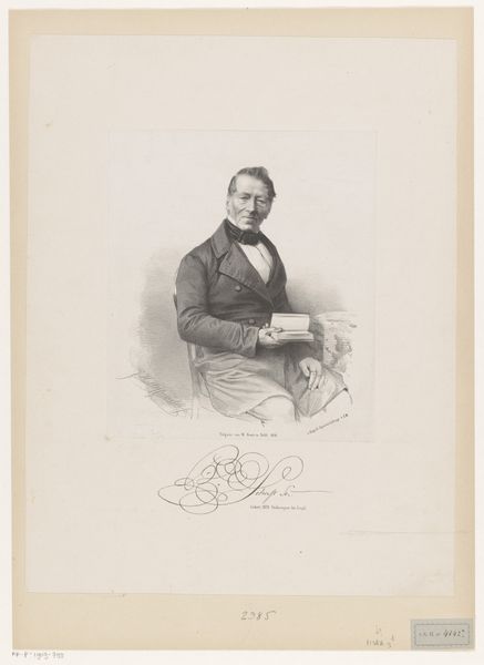 Curator: This print, residing here at the Rijksmuseum, is titled "Portret van Joseph Paxton." It was created sometime between 1842 and 1887 by Carel Christiaan Antony Last. Editor: Immediately, I’m struck by the texture. It has that gorgeous, almost velvety feel, created by layering shades of gray. A study in tone using very little. Curator: Exactly. This "portrait" seems primarily realized through meticulous engraving and possibly a light pencil under-drawing, which showcases the almost scientific precision of academic art at the time, an exploration into representation via mechanical means. Editor: The subject, Joseph Paxton, is poised holding a document—perhaps a design? I think the key material aspect lies not only in the finished piece but also in those preliminary sketches that must have gone into it, the paper itself and pencils he employed to imagine structures before making this print. Curator: A poignant thought. This drawing embodies so much—ambition, craft and the fragile nature of creative labor. It makes one wonder, what inspired Last to portray Paxton with such gravitas? What were they like? The imagination wanders easily... Editor: Perhaps it was a commercial engagement first and foremost? Someone paying to circulate images widely through reproduced form like prints and drawings? Or Last really admired Paxton; from my point of view it's crucial we examine those networks of patronage and artistic production rather than immediately delving for inspiration. It helps keep assumptions in check. Curator: Fair enough! It’s compelling how a relatively small piece of paper and ink can speak to these huge, almost incommensurable perspectives on creativity, production, reception... I love how the work creates that bridge. Editor: Yes. I leave thinking now more about distribution and value creation in the art system rather than about biographical questions.
