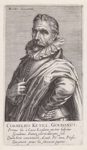 Editor: Here we have Johann Friedrich Leonard's engraving, "Portret van de predikant Sebastian Rödinger," created sometime between 1660 and 1672. The man’s steady gaze is captivating, yet there is something stern and perhaps weary in his expression. What can you tell me about the symbols and visual language present in this portrait? Curator: Indeed, that penetrating gaze invites inquiry. Observe the attire, the sober clothing offset by the intricate ruff. It signals status, yet not ostentatious wealth. Notice the paper clutched in his hand, what might it signify? The hand holds ideas, philosophical concepts perhaps; it represents a powerful means of asserting truth through intellectual action, echoing Martin Luther. What elements suggest cultural continuity in this engraving? Editor: The cap and beard, certainly. They give the portrait an almost antiquated air, a connection to earlier eras and traditions of scholarship. It seems to create a bridge with the past. Is that the intention, do you think? Curator: It could very well be. Clothing and personal adornment become crucial visual markers that establish his identity and situate him within a cultural memory. Think, too, about the act of creating engravings; to what artistic or societal lineages does it connect? To whom does this connect Rodinger? Editor: I never considered the engraving medium as symbolic itself. So the choice of medium ties the sitter to traditions and societal structures as well. That’s fascinating! Curator: Precisely. Each element subtly layers meaning, building an iconographic narrative that resonates across generations. What we initially perceive as simply a likeness becomes a complex statement about identity and the enduring power of symbols. It truly invites one to explore his beliefs and contribution, right? Editor: Yes, seeing how these elements function together has really transformed how I see portraiture.