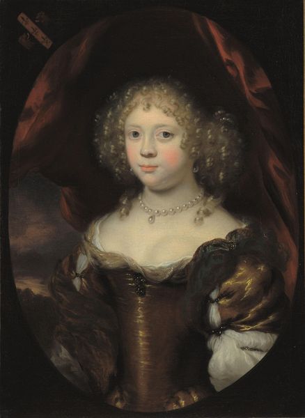 Curator: Looking at this portrait by Peter Paul Rubens, painted around 1635, one can’t help but feel drawn into the intimate world of the artist. He captures his second wife, Helena Fourment, in such a way that the personal becomes universally evocative. Editor: It strikes me first as a document of luxury. The sheen of the silk, the gold chains draped across her gown... it’s a powerful statement about material wealth and class in 17th century Europe. One immediately starts thinking about trade routes that made these adornments possible. Curator: Indeed, she is lavishly adorned, yet there's a quiet stillness, a certain interiority in her gaze that transcends mere display. Her adornments enhance the story, rather than define it. It's interesting how Rubens uses oil paints to create the illusion of light playing on her skin. Editor: Exactly, how the artist can transform raw materials into symbols of affluence – grinding pigments, weaving fabrics... Someone would have likely mined raw gold, refining techniques. Those chains and jewel are no simple props but products of intensive labor, and that should factor in our consideration here. Curator: The textures, too, fascinate me: the softness of her skin versus the rigidity of the pearl necklace, the subtle glint in her eyes. It evokes such feeling! It invites empathy! I can sense Rubens' genuine affection. And I keep returning to how the warm tones contrast with her fair skin to make her literally radiant. Editor: Radiant indeed. Still, the materials speak volumes about how she's positioned within that society's economy. We mustn’t ignore what sustains her. Rubens captured the moment of material production as a key part of his wife's life story. That adds layers of value here. Curator: I find this has been enlightening: examining the human condition as it mingles with materiality, even today. It’s so poignant how he used everyday materials to explore deep affection and respect. Editor: And for me, considering not just the image but also its material supports – paint, canvas, gold – as material archives. Examining production helps us reflect critically about power and beauty, so even after all this time, these remain works worth questioning.