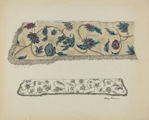 This costume sample presents a beautiful array of floral motifs stitched onto a dark fabric. The flowers, rendered in shades of pink, white, and blue, evoke feelings of joy, love, and celebration, reflecting the beauty of the natural world. Floral patterns, particularly in costume design, have a long and winding history across cultures. We see these motifs blooming in ancient Greek frescoes and Renaissance tapestries, each time carrying nuanced symbolic weight. Here, the arrangement and choice of flowers potentially speak to the wearer's virtues, status, or even a secret language of love and longing. Consider how, in a different guise, similar floral patterns might adorn a funerary shroud. Flowers remind us of life's ephemeral beauty, a constant cycle of bloom and decay. Thus, in the context of dress, they bring a poignant awareness of time and mortality, reminding us of the transience of beauty and life.