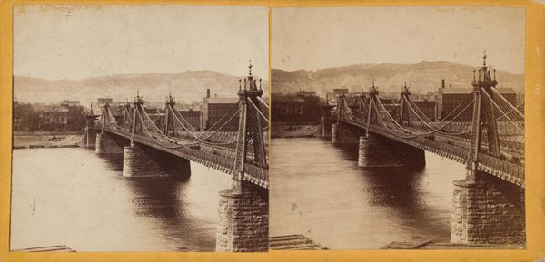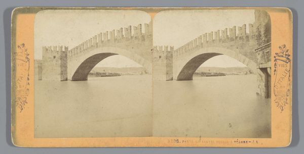 This stereograph of an Aqueduct Bridge was made by J.W. & J.S. Moulton around 1873-1881. What is striking here is how the bridge is portrayed as a feat of engineering, with the stereographic format allowing for an immersive visual depth. The structure is presented with a robust sense of line and form. The bridge spans across the scene with a series of arches supported by solid pillars. Each component is captured with a clarity that speaks to the photographer’s interest in form and structure. Note the stark contrast between the static solidity of the bridge’s stonework, and the motion of the water. The photographic medium itself plays a crucial role here. The sepia tones and the textures captured by the camera create a tangible presence, as if the photograph were not just a representation but an index of the bridge itself. This image challenges our perception of space and representation, inviting us to consider how visual technologies shape our understanding of the built environment.
