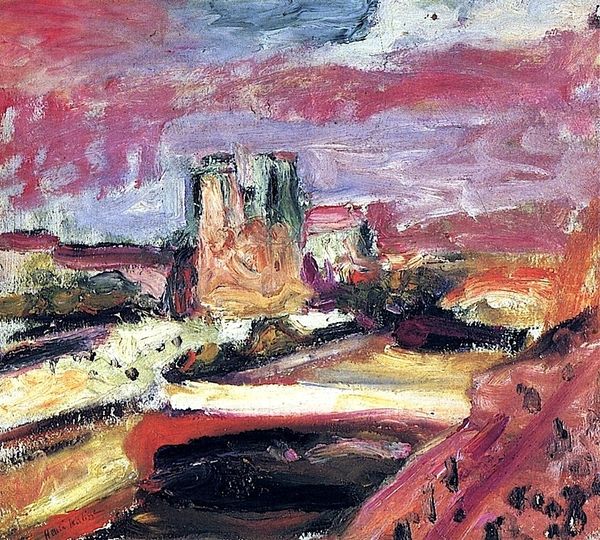 Henri Matisse painted this "View of Notre Dame" with oils, where the brushstrokes feel like they're dancing. He's not just copying what he sees, but also showing us how he sees. The paint is put on kind of thick, especially in the sky, with blues and creams swirled together. It's like he's building the sky right there on the canvas, layer by layer. The cathedral itself is more of a suggestion, like a memory. What strikes me is the vertical mark on the right hand side of the picture plane, probably the edge of a window, which emphasizes the interiority of the viewpoint and the feeling of being slightly removed from the cityscape. Matisse is doing what artists do – having a conversation with the world and with other artists, like Cezanne, but always in his own voice. In the end, it’s not just a view of Notre Dame, but a view into Matisse's way of seeing.