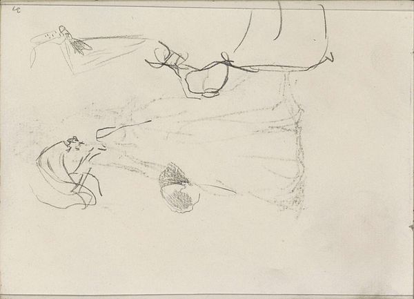 Editor: So this is "Gezicht, mogelijk van een vrouw" or "Face, possibly of a woman," a pencil drawing by Isaac Israels, made sometime between 1887 and 1934. It feels very fleeting, almost like a half-remembered dream. What do you see in this piece, beyond the obvious portrait? Curator: I see layers of societal expectations and perhaps even hidden anxieties embedded in what appears as a simple sketch. Consider the time period. The late 19th and early 20th centuries saw immense shifts in gender roles. How much is this drawing representative of his subject? What's visible or obscured? What societal pressures might have informed Israels’ mark-making? Editor: So you're saying the incompleteness of the image isn’t just the style, but it hints at something more? Curator: Precisely. Observe the very light touch with which the artist depicts her, a fleeting image of feminine identity, conforming to a specific type but also receding back into abstraction. The sketch mirrors the cultural constraints placed upon women during this era. Are they wholly visible? Is her presence valued? The pencil lines themselves create a narrative of both presence and erasure. Editor: That’s a very different way of seeing it! I was just thinking about it in terms of Impressionism. Curator: Ah, yes, and note how impressionism becomes the visual language for cultural uncertainty, how the visible world fails to capture or to constrain feminine reality! Think of how different artistic movements encode social, political, and psychological anxieties into form! What did this brief conversation reveal about it? Editor: That even seemingly simple sketches can hold deeper meanings about society and individual experience. I need to keep asking "Why THIS way?" and "What does that leave OUT?"