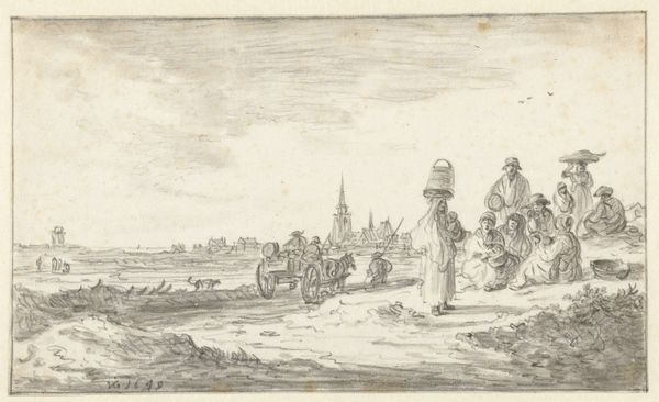 Jan van Goyen made this drawing of figures on a stone bridge with graphite on paper. Graphite, at the time, was a relatively new material with unique qualities. Consider the ways van Goyen has leveraged graphite's qualities to describe texture, weight, and form. See how its softness allows him to make marks ranging from barely-there to dark and deliberate. Observe how van Goyen uses lines to depict people of different classes. The lines vary between dense and sparse, and each variation contributes to its social meaning, telling stories of work, leisure, and everyday life. Paying attention to these materials and processes enables us to appreciate not only the artist’s skill, but also how the making of this drawing is deeply intertwined with its social and cultural context.