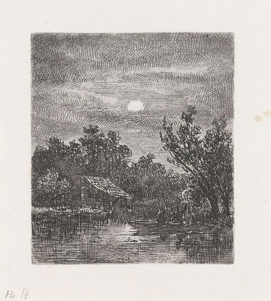 Dirk Jurriaan Sluyter created this landscape by night with storks as an engraving. Sluyter, who lived during the period of significant social and political change in Europe, particularly marked by the rise of industrialization and urbanization, invites us to reflect on the changing relationship between humanity and nature. In the stillness of the night, the storks stand as silent witnesses, perhaps symbolizing a connection to the natural world that was increasingly threatened. The nocturnal setting evokes a sense of mystery and introspection, suggesting that the true essence of the landscape is revealed not in the bright light of day, but in the quiet darkness of night. This scene, which is reminiscent of the Dutch landscape, seems untouched by the concerns of a rapidly modernizing world. The artwork is a quiet and emotional reflection on the enduring power and beauty of the natural world, and on the importance of preserving it for future generations.