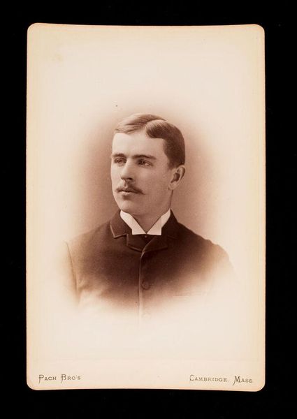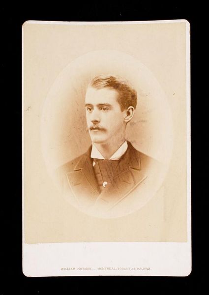 Curator: This is an albumen print by William Notman, an untitled portrait of Sewall Henry Hooper, likely taken around 1875. Editor: There's such a gentle quality to this image. The soft focus around the subject gives him a dreamlike presence. Curator: Notman's studio became quite well-known for these portraits, catering to a growing middle class eager to participate in visual culture and construct a lasting image of themselves. Editor: It makes me wonder what Sewall Henry Hooper’s dreams were at that age. What did he hope to accomplish after graduating from Harvard? Curator: Precisely. The photograph becomes a marker of social identity and aspiration. It's a fascinating glimpse into the construction of masculinity and class. Editor: It's like peeking through a sepia-toned window into someone's past, imagining the hopes and fears of a young man on the cusp of his future.