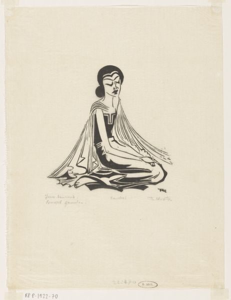 Editor: So, here we have a drawing titled "Hamlet" by John Austen, seemingly made with ink. It’s striking how decorative the figure’s clothing is. What’s your read on this piece? Curator: You know, I find her simultaneously ethereal and burdened, don’t you think? Her downcast gaze is heavy, but the ornamental details in her costume create this strange kind of otherworldly beauty, like a Pre-Raphaelite painting channeling Aubrey Beardsley’s linework. Do you get that kind of vibration from this piece? Editor: Yes, I definitely see those echoes! The density of the pattern-work is mesmerizing. Does that suggest anything about its potential historical or cultural background, or is it strictly about aesthetics? Curator: Ah, that’s a delicious question! I think it tells us something about the decadence inherent to the Art Nouveau movement that Austen inhabited. There’s this yearning for escape from the everyday through beauty, an aesthetic cloak to hide… what? What do you think she's hiding behind? Editor: Perhaps grief, or a world-weariness, given the title. The weight of the play itself, maybe? Curator: Precisely. She feels trapped in this elaborate fabrication, almost entombed within that spectacular costume, forever playing her part. Art can reflect our own contrivances, you know? Editor: That gives me a lot to think about. It's amazing how a seemingly straightforward portrait can be so layered with potential meanings. Curator: Indeed! That's the delicious paradox of art, isn’t it? An open door to countless stories... including our own.