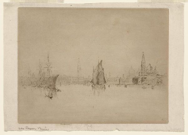 Joseph Pennell created this etching called 'Yesterday and Today in Venice'. It's a complex interplay between the visual representation of a city and the social and economic changes it undergoes. Pennell made this image during the late 19th and early 20th century, a period of rapid industrialization and urbanization. Venice, with its rich history and unique urban fabric, became a popular subject for artists and writers exploring themes of modernity and tradition. Pennell's choice of etching, a traditional printmaking technique, further emphasizes this tension between the old and the new. Note how the image contrasts the city’s iconic landmarks with the bustling activity of the port, hinting at the impact of commerce and tourism on Venetian society. To fully appreciate this work, we need to consider the artist's perspective. Studying Pennell’s writings, and the critical reception of his work, can provide valuable insights into the social and cultural context that shaped the artwork.