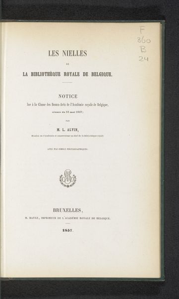 This is the title page of a book called, "L'art et l'industrie d'autrefois dans les régions de la Meuse belge : souvenirs de l'exposition rétrospective de Liége en 1881," by Charles de Linas. The page presents a study in visual hierarchy through typography. Notice how Linas uses varied font sizes and weights to guide the reader’s eye. The title is prominent and bold, immediately capturing attention. The subsequent lines decrease in size, creating a structured flow of information. The deliberate arrangement of text blocks within the frame creates balance and order. The choice of a simple, unadorned typeface speaks to a desire for clarity and directness, typical of informational texts from this era. The page operates almost as a visual contract, laying out the terms of engagement between the reader and the historical content within. The formal elements, therefore, don’t just present information but also shape our understanding and expectations. The composition offers a glimpse into the cultural values placed on clarity and order during this time.