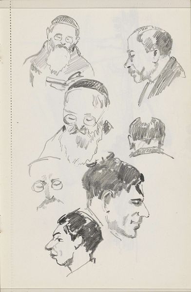 Johannes Tavenraat made this study of heads with pen and brown ink in the Netherlands sometime in the first half of the 19th century. Tavenraat was part of a generation of artists who trained at the academies and then sought to build a career on the basis of their skills in drawing and painting. This sheet is probably from a sketchbook and it shows Tavenraat practicing the skill of capturing different characters, probably in preparation for a larger history painting, genre scene, or portrait. The expressive faces are reminiscent of theater or the new art of caricature, which was gaining popularity in Europe in this period. We know that academies of art played an important role in standardizing the acceptable ways of representing the human body, and drawings like this one, which seem to experiment with physiognomy, suggest that there was also a popular interest in types that existed outside the academic canon. In order to fully understand the social implications of these images, the art historian would want to study the popular imagery of the time, including printed caricatures and illustrations.