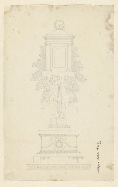 Carl Wilhelm Marckwort made this design for a secretaire with pen and brush in gray. The secretaire, a writing desk, is conceived as a miniature classical temple. Notice how Marckwort employs architectural elements like columns and arches, drawing on a visual vocabulary of power and authority. This design reflects a broader cultural trend in Europe, where classical forms were revived to evoke the grandeur of ancient civilizations, particularly Rome. The classical style wasn't just about aesthetics; it was linked to ideas of rationality, order, and civic virtue. By incorporating these elements into a domestic object, Marckwort elevates the act of writing and personal correspondence to something of civic importance. This drawing gives us insights into the period’s aesthetic values and its social structures. Further research into the decorative arts of the period, alongside archival documents about designers and patrons, helps us to more fully understand the social life of this object. The meaning of any artwork always depends on a wider context.