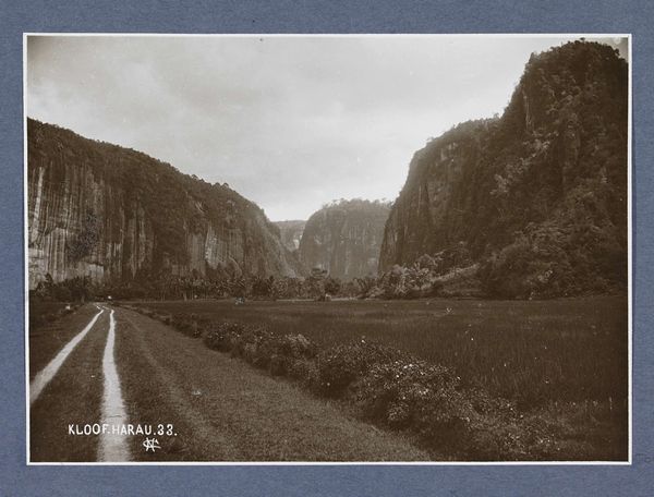 This photograph, titled "Gezicht op het Nærøyfjord bij Gudvangen," presents a striking view of the Norwegian fjord. Immediately, one is struck by the composition, dominated by the vertical thrust of the towering cliffs that frame the scene. The monochromatic palette enhances the textures of the rock faces, emphasizing their rugged, almost monumental quality. The photograph's structure invites us to consider the relationship between nature's grandeur and human presence. The sheer scale of the cliffs, rendered in meticulous detail, contrasts with the distant, almost diminutive signs of human habitation. This juxtaposition echoes a romantic sensibility, emphasizing the sublime power of nature while acknowledging humanity's place within it. The photograph plays with our perception of space. The use of atmospheric perspective blurs the distant mountains, creating a sense of depth, while the sharp focus on the foreground cliffs brings them into immediate, tactile proximity. The image serves as a meditation on perception, scale, and the human relationship to the natural world.